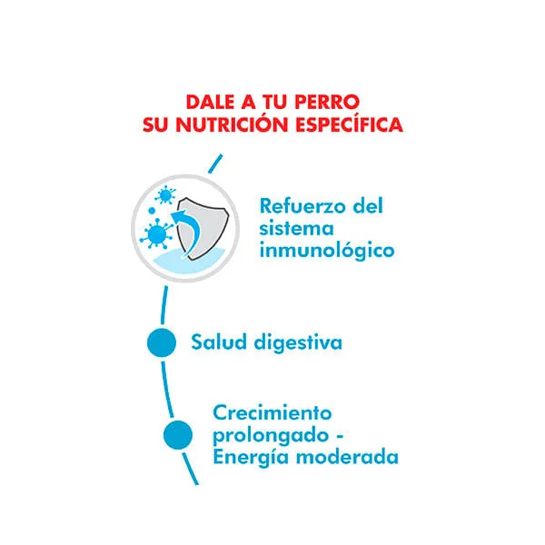 • Proteínas altamente digestibles (L.I.P.) y prebióticos que mejoran la salud intestinal.