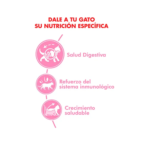 Royal Canin Kitten está especialmente formulado para gatitos desde los 4 hasta los 12 meses de edad. Acompaña esta etapa de desarrollo intenso con una nutrición equilibrada que fortalece el sistema inmunológico, promueve una digestión saludable y cubre sus altas necesidades energéticas.