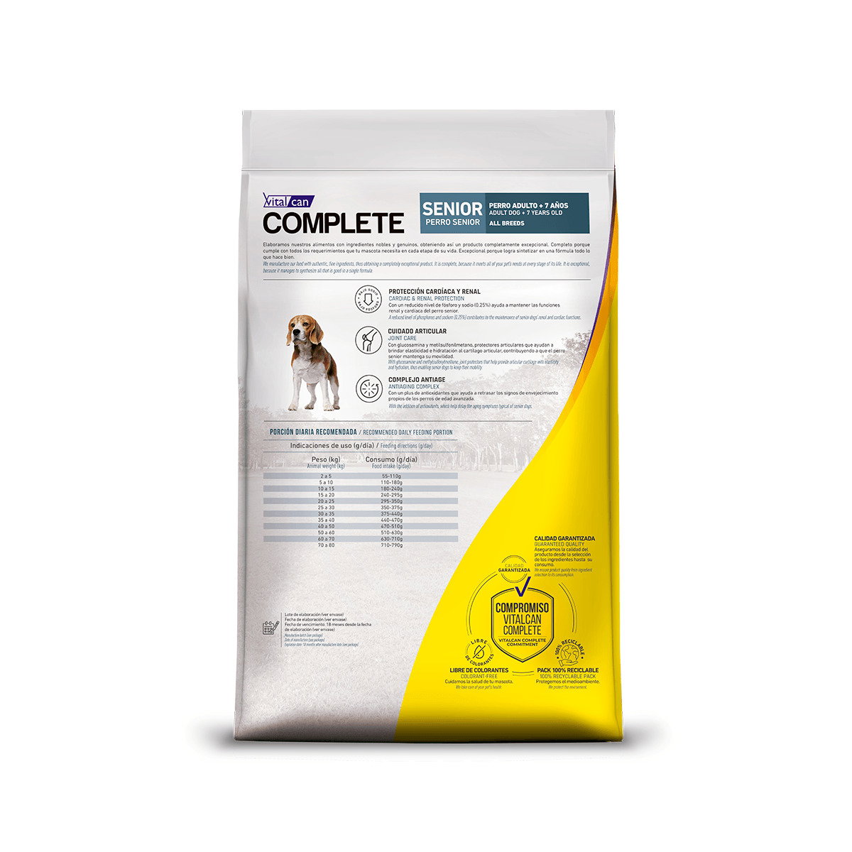 Alimento completo y equilibrado especialmente formulado para perros mayores, que ayuda a mantener su vitalidad, movilidad y bienestar general en las etapas avanzadas de la vida.