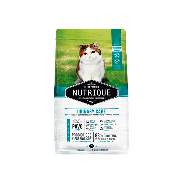 Salud del tracto urinario: Nutrique Cat Urinary Care está formulado para promover la salud del tracto urinario de tu gato. Contiene dosis equilibradas de minerales (especialmente calcio, fósforo y magnesio) que ayudan a prevenir la formación de cálculos urinarios. Esto es esencial para gatos que son propensos a desarrollar cristales urinarios o problemas como la cistitis felina.