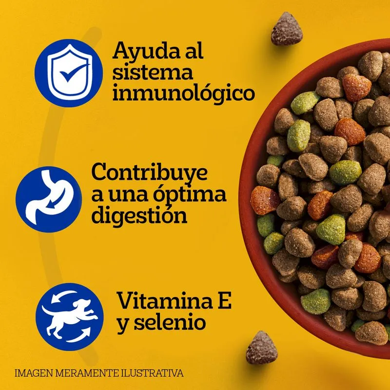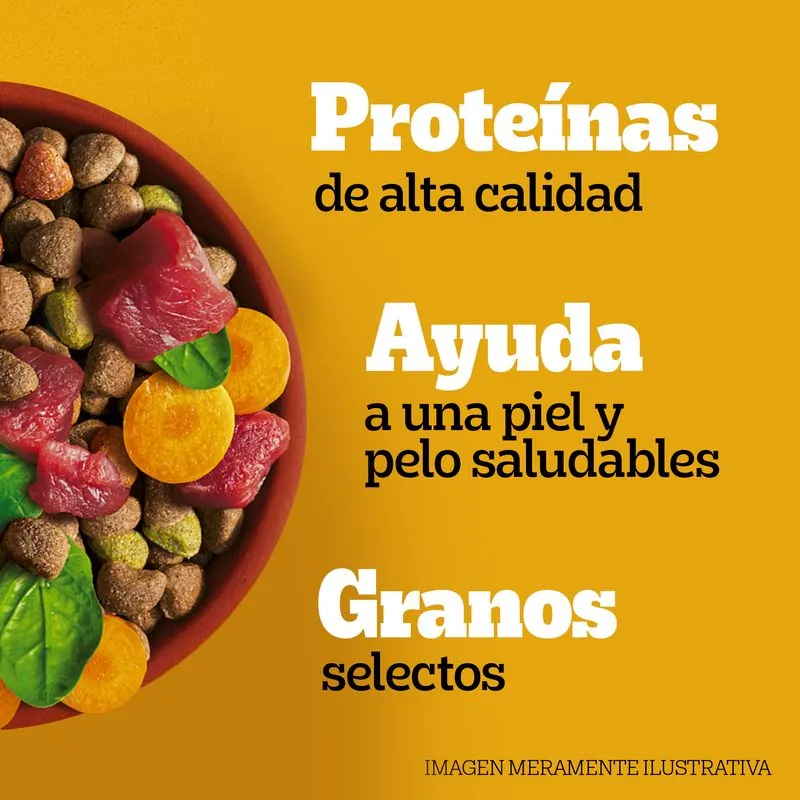 PEDIGREE Adulto Carne y Vegetales combina lo mejor de las proteínas animales con el aporte natural de los vegetales, ofreciendo una dieta completa y equilibrada para perros adultos. Ayuda a mantener su energía diaria, una digestión saludable y un pelaje brillante, gracias a su mezcla nutritiva y altamente palatable.