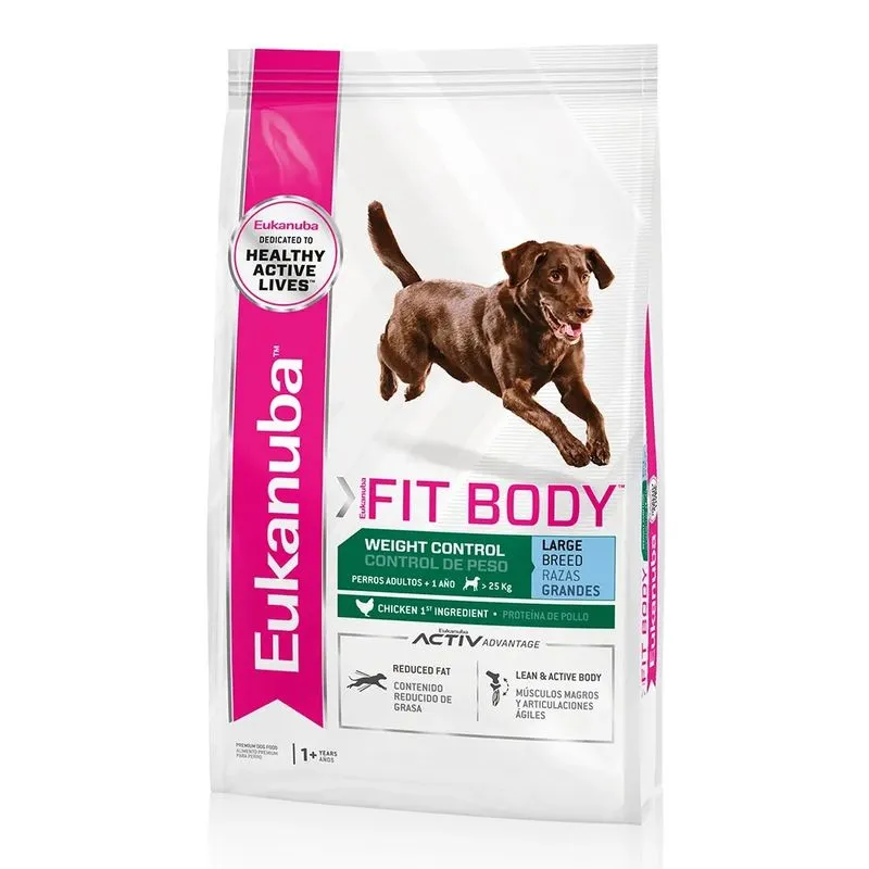 Eukanuba Control de Peso Grande está formulado para perros grandes que necesitan perder o mantener su peso. Su bajo contenido calórico y su fórmula rica en fibra ayudan a reducir la grasa corporal mientras conservan la salud muscular y articular.