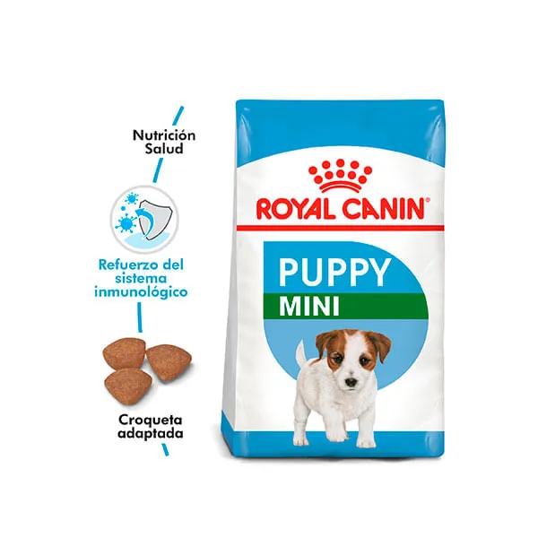 Royal Canin Mini Puppy está formulado para cachorros de razas pequeñas (peso adulto de hasta 10 kg) desde los 2 hasta los 10 meses de edad. Su fórmula ayuda a fortalecer las defensas naturales, favorece una digestión saludable y aporta la energía necesaria para acompañar su rápido desarrollo.