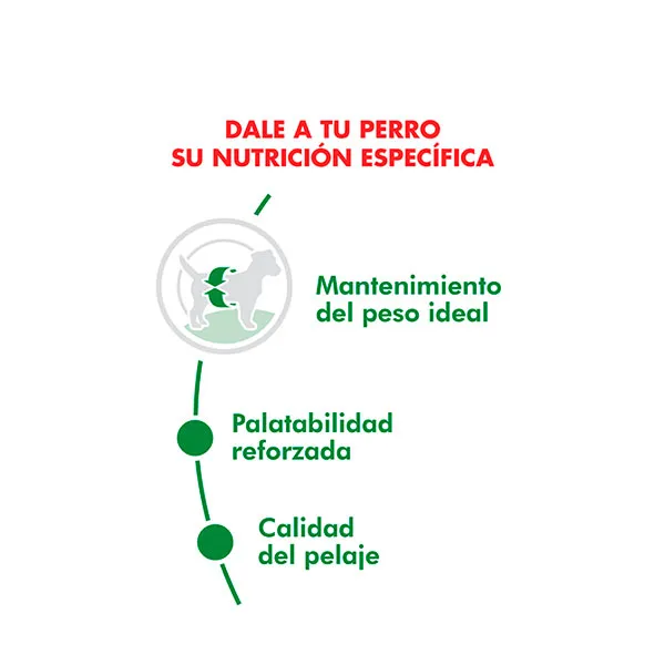 Royal Canin Mini Adult está formulado especialmente para perros adultos de razas pequeñas (hasta 10 kg) a partir de los 10 meses de edad. Ayuda a mantener un peso saludable, mejora la salud de piel y pelaje, y satisface los apetitos más exigentes gracias a su alta palatabilidad.