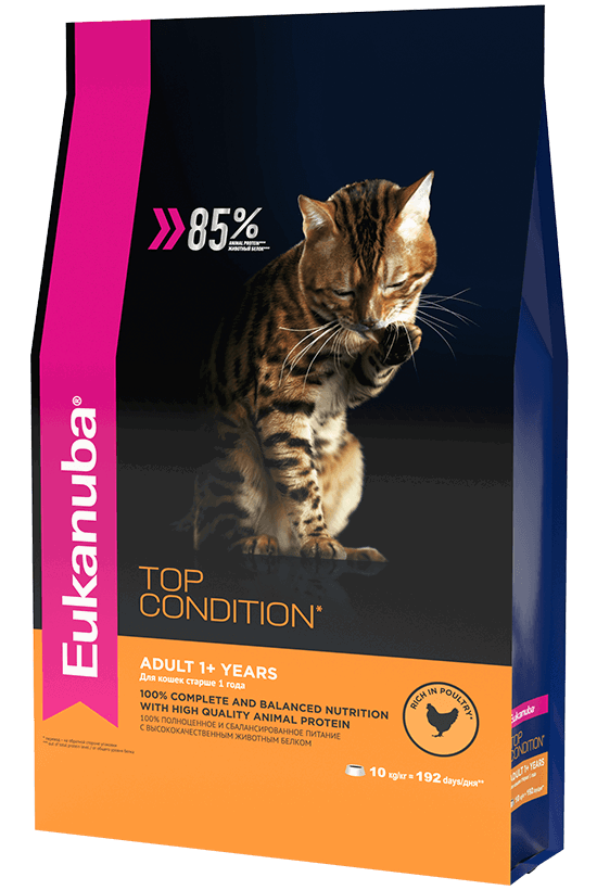 EUKANUBA Gato Adulto Top Condition está formulado con proteínas animales de alta calidad, incluyendo pollo, para ayudar a mantener la masa muscular magra, favorecer una digestión saludable y promover un pelaje brillante. Su fórmula balanceada cubre las necesidades diarias de los gatos adultos, asegurando salud y bienestar general.