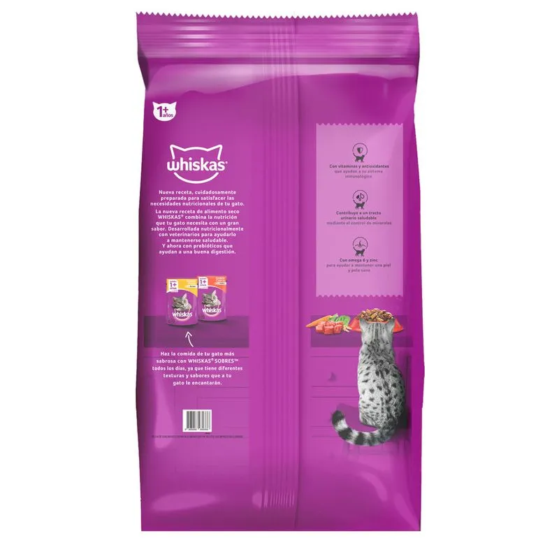 WHISKAS Carne está formulado para brindar a tu gato una alimentación completa y balanceada, con el sabor irresistible de la carne que tanto disfruta. Sus croquetas crujientes por fuera y suaves por dentro ayudan a mantener la salud bucal, mientras que su fórmula aporta proteínas, vitaminas y minerales esenciales para una vida sana y activa.