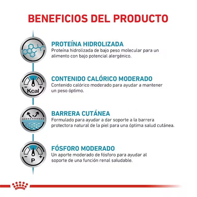 Indicado para perros con alergias alimentarias, dermatitis, diarreas crónicas, colitis o enfermedad inflamatoria intestinal, especialmente en aquellos con tendencia al sobrepeso.