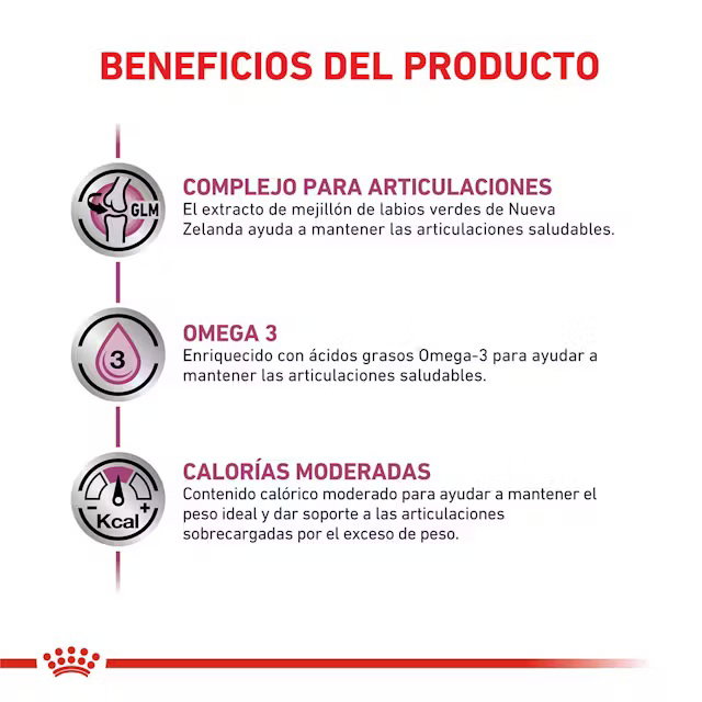 ROYAL CANIN Mobility Support es un alimento dietético completo formulado para perros que necesitan apoyo en la salud articular y movilidad debido a condiciones como artritis, osteoartritis o envejecimiento. Su fórmula contiene nutrientes específicos como glucosamina, condroitina, EPA y DHA, que ayudan a mantener la integridad del cartílago y a reducir la inflamación articular.