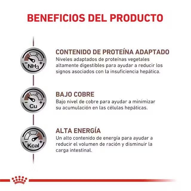 ROYAL CANIN Hepatic es un alimento dietético completo formulado para perros con enfermedades hepáticas crónicas o insuficiencia hepática que requieren un manejo nutricional especializado. Su fórmula contiene proteínas de alta calidad en niveles moderados, reduciendo la carga sobre el hígado.