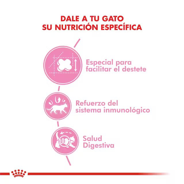 ROYAL CANIN Babycat es un alimento completo y balanceado formulado para gatitos en la etapa inicial de crecimiento (de 1 a 4 meses), así como para gatas en gestación o lactancia. Su fórmula está diseñada para facilitar la transición del destete, con ingredientes altamente digestibles que apoyan el desarrollo óptimo del sistema digestivo.
