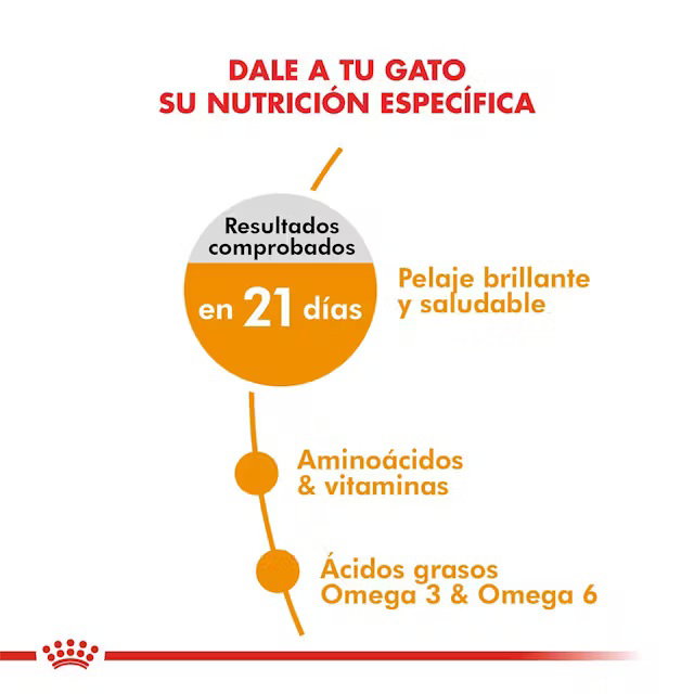 ROYAL CANIN Hair & Skin es un alimento completo formulado para gatos adultos que necesitan cuidar la salud de su piel y pelaje. Su fórmula contiene nutrientes específicos, como ácidos grasos esenciales (EPA y DHA), vitaminas y aminoácidos que ayudan a fortalecer la barrera cutánea y mejorar la calidad del pelaje.