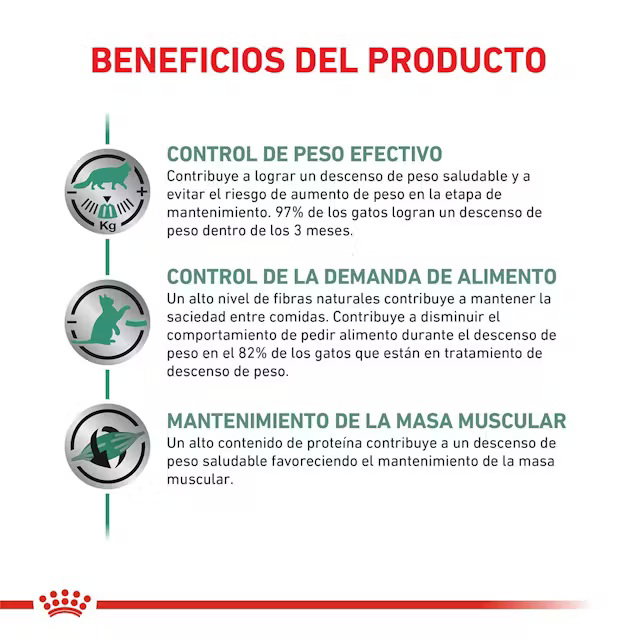 ROYAL CANIN Satiety Support Feline es un alimento dietético completo formulado para ayudar a los gatos a perder peso de forma segura y mantener el peso ideal. Su alto contenido de fibras ayuda a generar sensación de saciedad, reduciendo el consumo calórico sin provocar hambre excesiva.