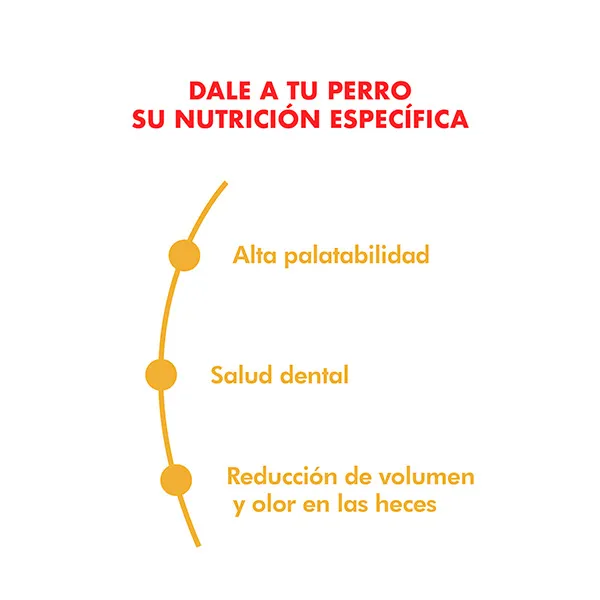 Gracias a su alta palatabilidad, croquetas adaptadas y nutrientes seleccionados, ayuda a estimular el apetito incluso en perros quisquillosos, favoreciendo una buena digestión y reduciendo el volumen y olor de las heces.