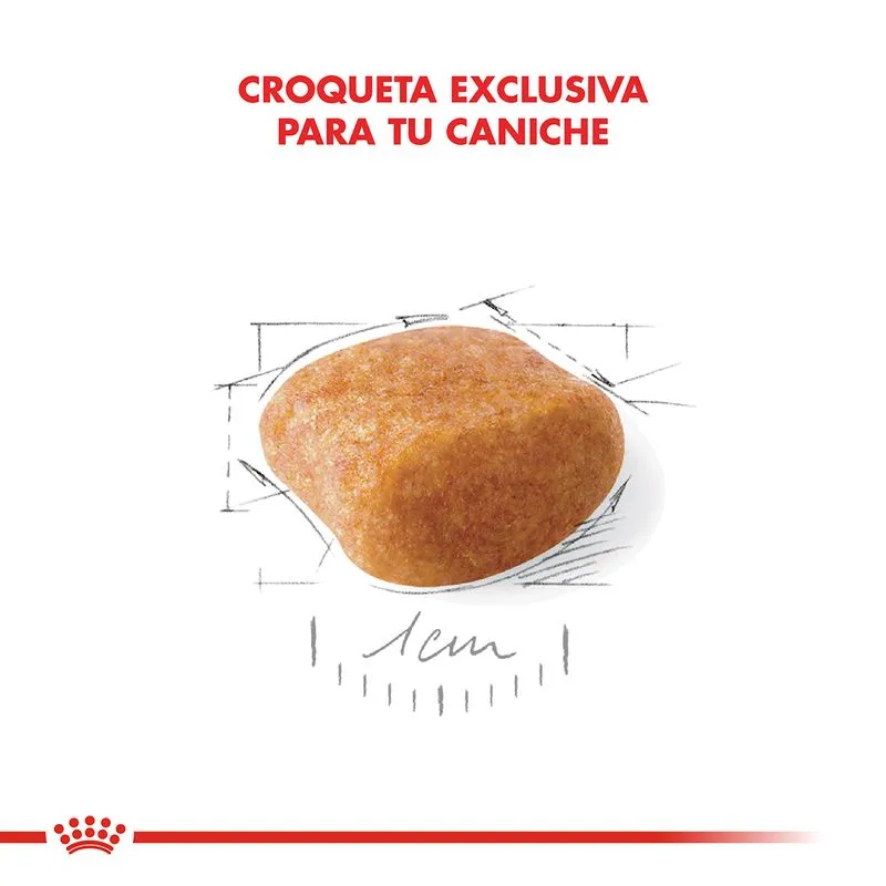 ROYAL CANIN Poodle 30 Adulto es un alimento completo formulado específicamente para perros adultos de raza Poodle (Caniche) a partir de los 10 meses de edad. Su fórmula contribuye al mantenimiento de la masa muscular, la salud del pelaje rizado y apoya el envejecimiento saludable.