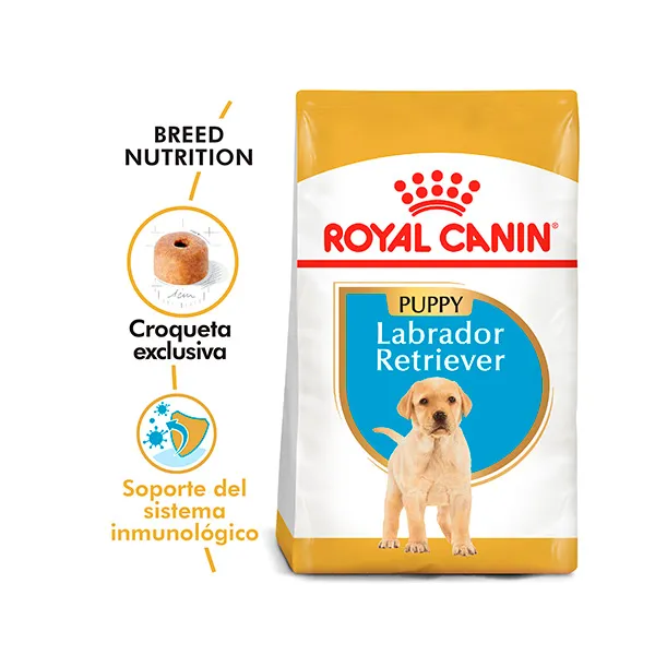ROYAL CANIN Labrador Junior es un alimento completo formulado especialmente para cachorros de raza Labrador Retriever desde los 2 hasta los 15 meses de edad. Su fórmula está diseñada para apoyar un crecimiento saludable, reforzar las defensas naturales y favorecer el desarrollo muscular y óseo adecuado en esta raza activa y enérgica.