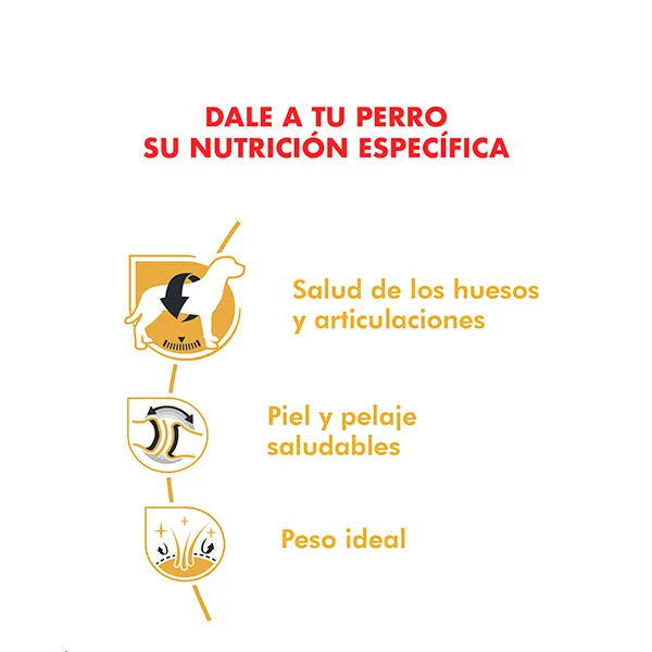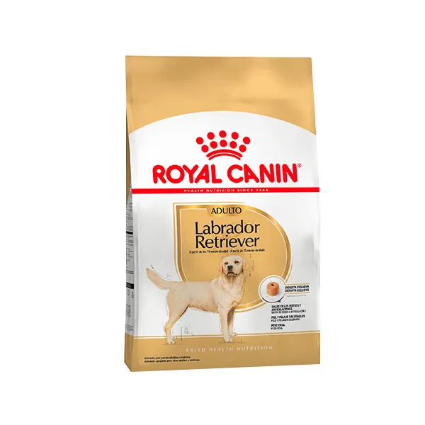 ROYAL CANIN Labrador Adulto es un alimento completo formulado especialmente para perros adultos de raza Labrador Retriever a partir de los 15 meses de edad. Su fórmula nutricional está diseñada para mantener la salud muscular, apoyar la salud articular y favorecer un pelaje sano y brillante en esta raza activa y fuerte.