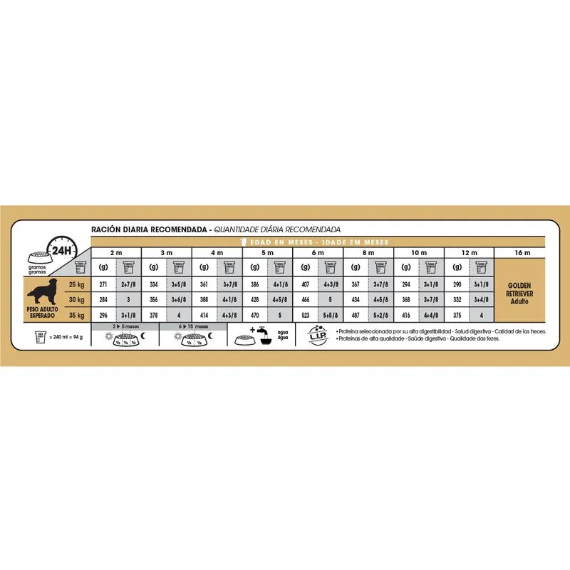 Recomendado para cachorros Golden Retriever de 2 a 15 meses.