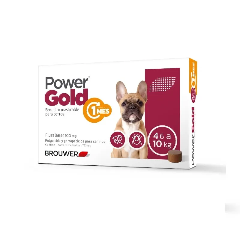 Power Gold Comprimidos 1 Mes brinda una protección efectiva contra pulgas para perros de 4,6 a 10 kg. Su fórmula de acción rápida elimina los parásitos en pocas horas y mantiene el efecto durante 30 días con una sola dosis.