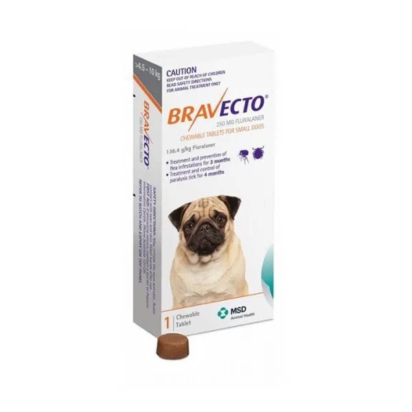 Bravecto Comprimidos brinda protección prolongada contra pulgas y garrapatas para perros medianos (4,5 a 10 kg). Con una sola dosis oral, su fórmula de acción rápida protege hasta 12 semanas.