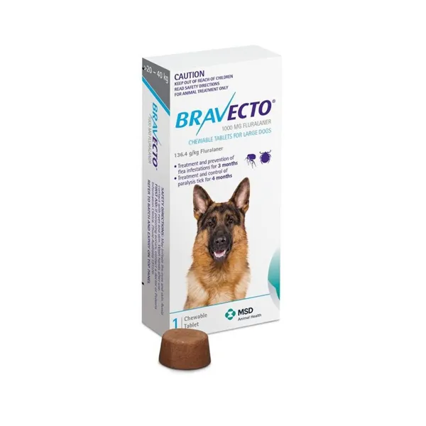Bravecto Comprimidos brinda una solución eficaz y duradera contra pulgas y garrapatas en perros grandes (20 a 40 kg). Una sola dosis protege durante 12 semanas, ofreciendo comodidad y seguridad para tu mascota.