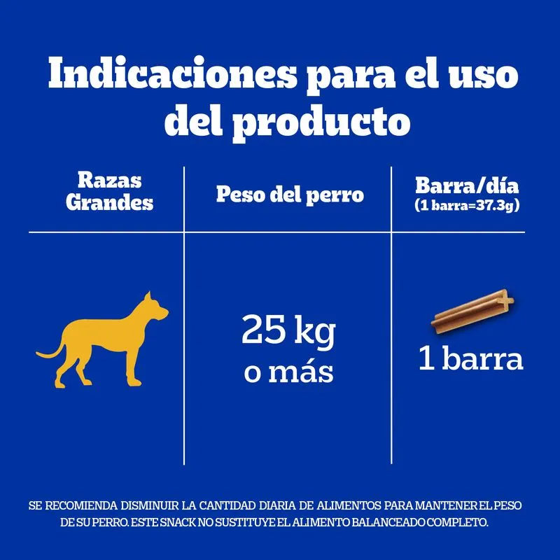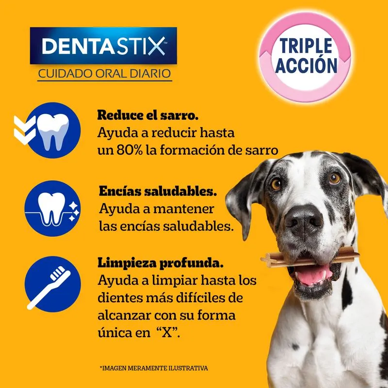 Con Dentastix Raza Grande x3, tu perro grande puede disfrutar de una limpieza dental efectiva en un formato ideal para probar o llevar de viaje. Estas barras masticables están diseñadas para razas de más de 25 kg y ayudan a reducir sarro y placa mientras cuidan su aliento.