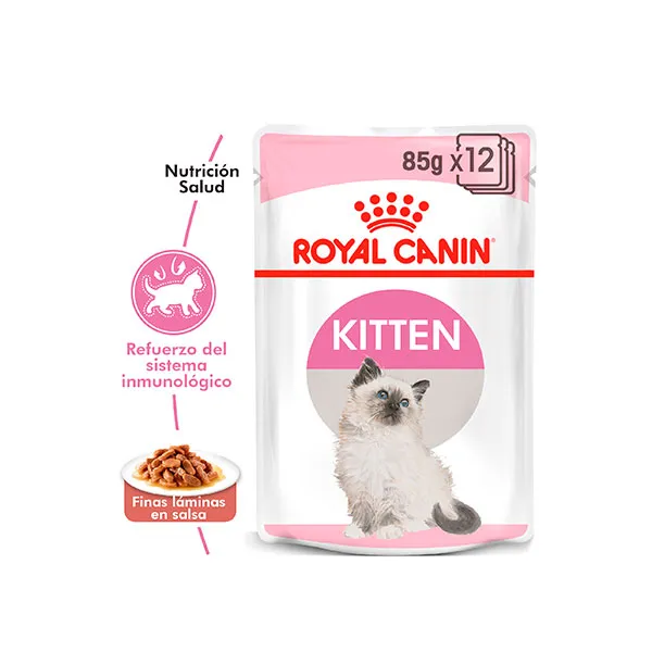 Con ROYAL CANIN KITTEN Salsa 85g, tu gatito recibe una alimentación húmeda completa y balanceada, especialmente formulada para acompañar su etapa de crecimiento. Su textura suave y su exquisito sabor lo hacen irresistible, mientras le aporta todos los nutrientes esenciales que necesita para desarrollarse sano y fuerte.