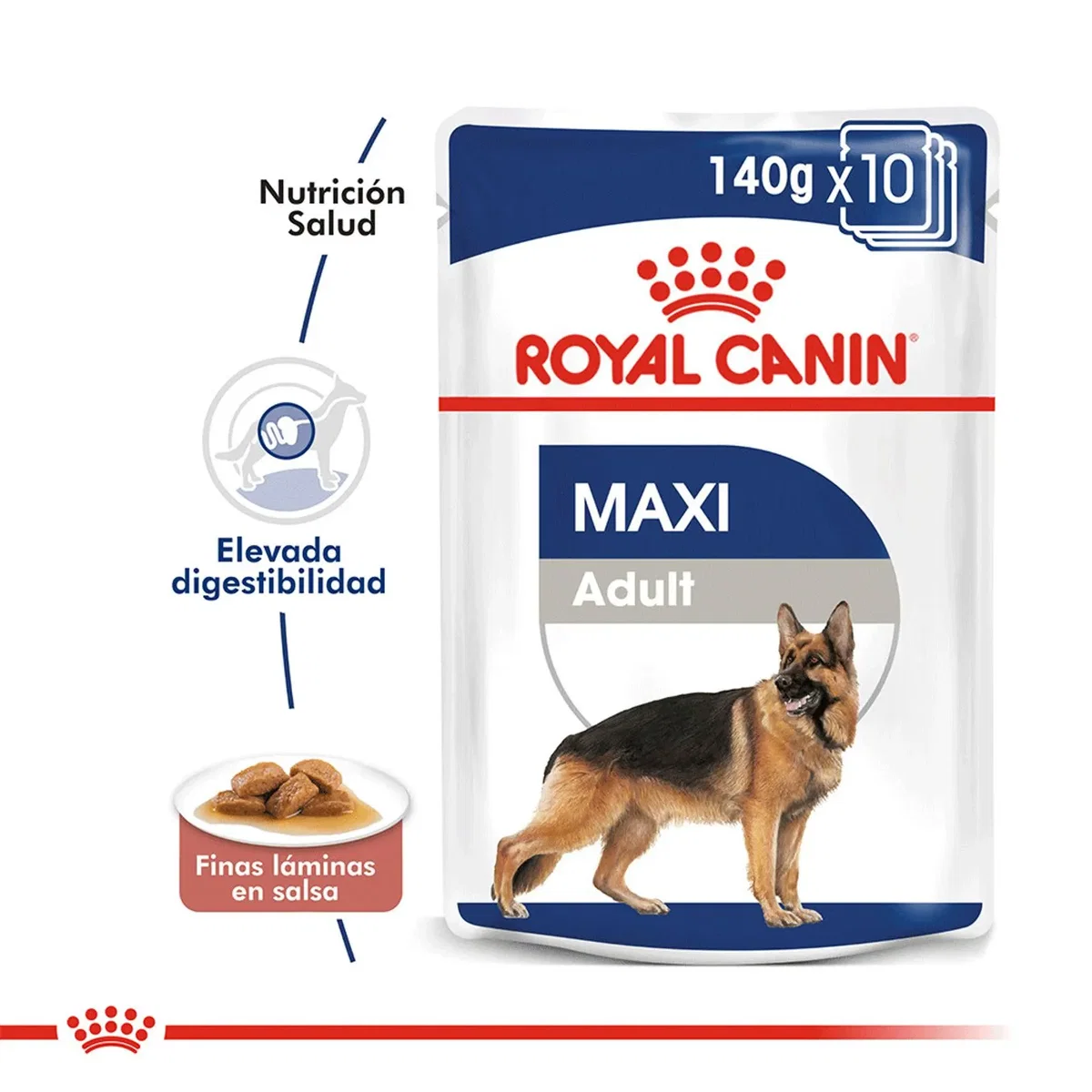Con ROYAL CANIN MAXI en Salsa 140g, tu perro de raza grande recibe una alimentación húmeda completa y balanceada, formulada para cubrir sus necesidades específicas. Su textura en salsa y sabor delicioso lo hacen irresistible, mientras aporta nutrientes esenciales para mantener su salud y condición física óptima.