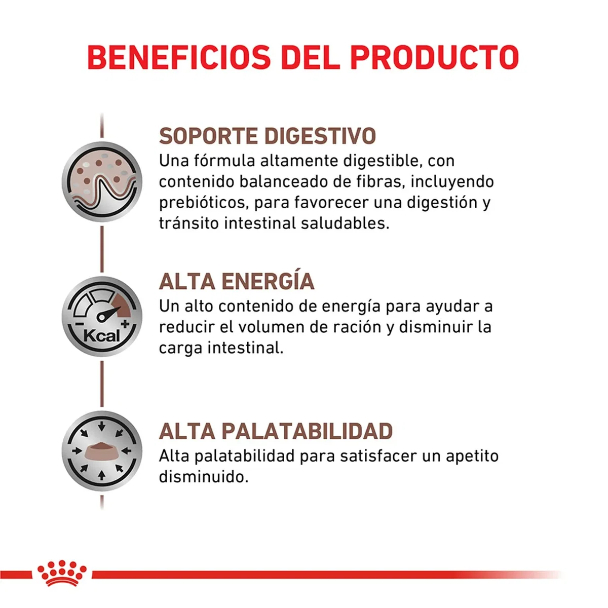 Ideal para perros con vómitos, diarreas, colitis, pérdida de apetito o recuperación postoperatoria.