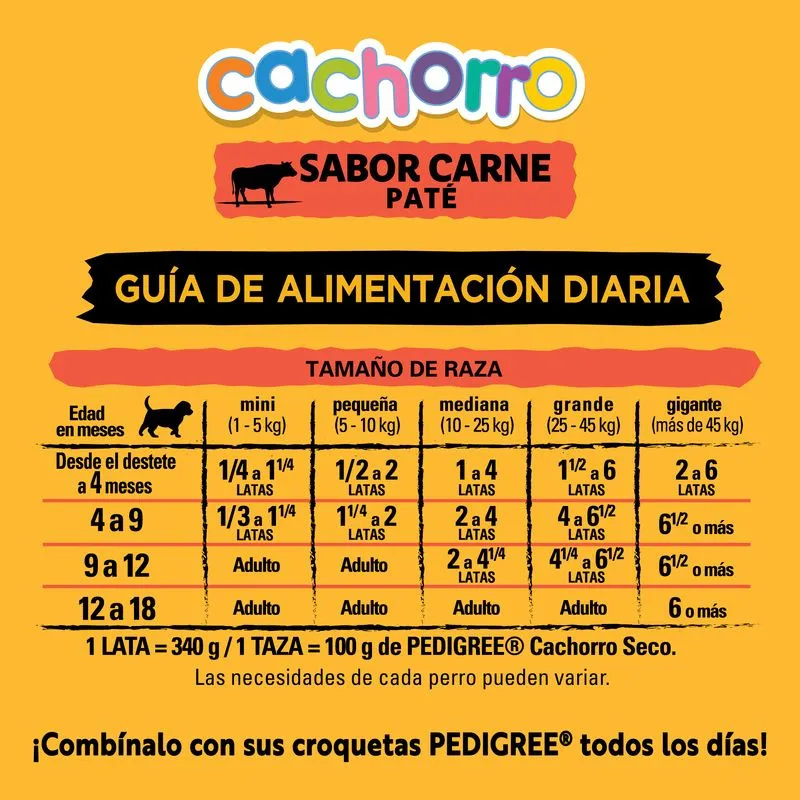 Con Pedigree Latas Cachorro Carne, tu cachorro recibe una alimentación húmeda especialmente formulada para su etapa de crecimiento. Esta receta con carne cocida al vapor aporta proteínas de alta calidad, calcio, vitaminas y minerales que ayudan al desarrollo de huesos fuertes, músculos sanos y un sistema inmune fuerte.