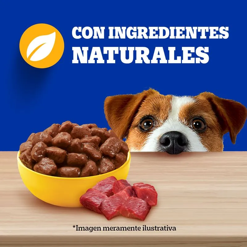 Con Pedigree Pouch Adulto Raza Pequeña Carne, tu perro pequeño recibe una comida húmeda deliciosa y adaptada a sus necesidades específicas. Esta receta con carne cocida al vapor está formulada con el tamaño, textura y nutrientes ideales para perros adultos de razas pequeñas, ayudando a mantener su energía, digestión y salud general.