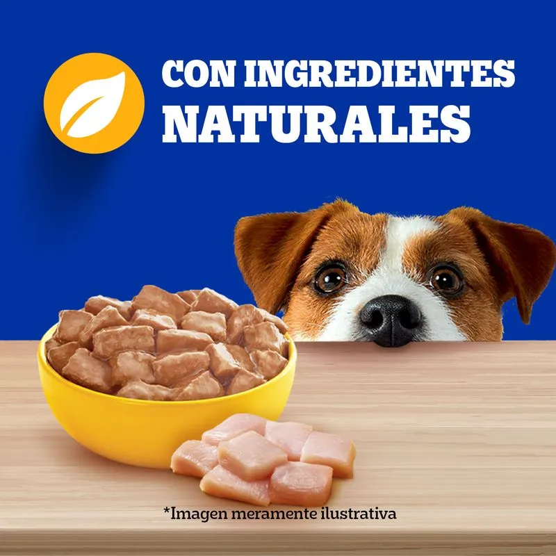 Con Pedigree Pouch Adulto Raza Pequeña Pollo, tu perro disfruta de una comida húmeda especialmente formulada para razas pequeñas. Esta receta con pollo cocido al vapor ofrece proteínas de calidad, vitaminas y minerales esenciales en una textura y porción adaptadas a su tamaño.